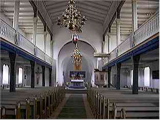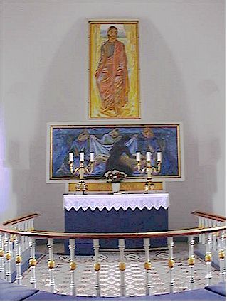 Die Altartafel und der Taufstein aus dem alten Kirchenbau kann man im Bornholms Museum bewundern.
